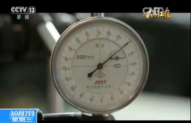 在這個(gè)千分表上,一個(gè)刻度就是千分之一毫米,相當(dāng)于一根頭發(fā)絲的六十分之一?,F(xiàn)在千分表顯示,這個(gè)量具的高度比零多出了兩格,也就是說,比標(biāo)準(zhǔn)尺寸多了千分之二毫米。