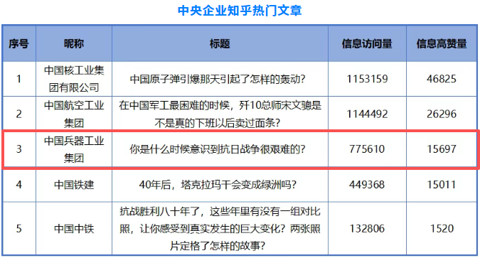 1月3日,國(guó)務(wù)院國(guó)資委新聞中心聯(lián)合清華大學(xué)新聞與傳播學(xué)院、中國(guó)企業(yè)聯(lián)合會(huì),發(fā)布“2025年度中國(guó)企業(yè)新媒體指數(shù)”,通過平臺(tái)作品數(shù)、播放量、點(diǎn)贊數(shù)、評(píng)論數(shù)等維度綜合評(píng)估,評(píng)選出各中央企業(yè)在微信、微博、視頻號(hào)、抖音、快手、今日頭條、知乎、Bilibili等新媒體平臺(tái)的5部熱門作品。 兵器工業(yè)集團(tuán)兩部作品入選,其中: 《亮家底兒,曬太陽!西藏軍區(qū)某裝備保養(yǎng)大場(chǎng)面來了!》入選中央企業(yè)今日頭條熱門文章。 《你是什么時(shí)候意識(shí)到抗日戰(zhàn)爭(zhēng)很艱難的?》入選中央企業(yè)知乎熱門文章。 |